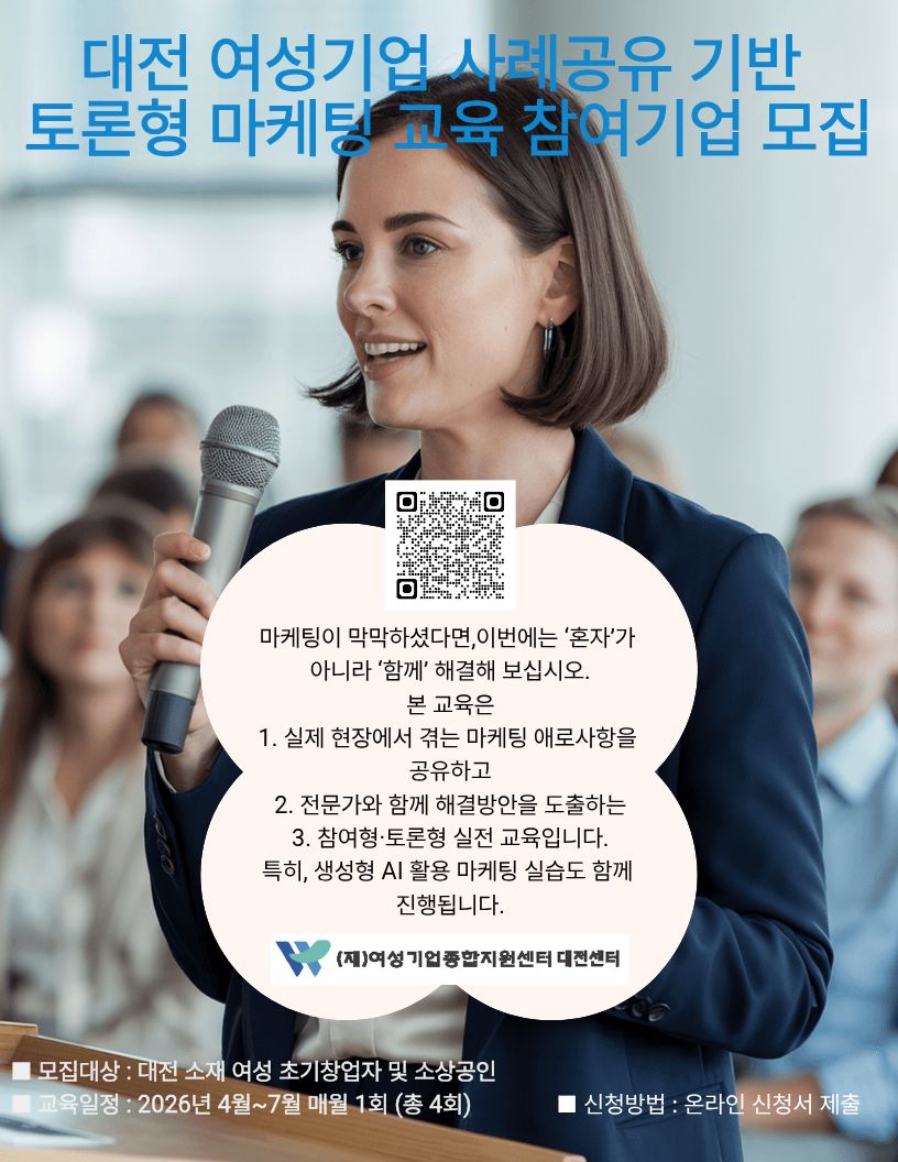 2026년 대전광역시 여성기업 사례공유 기반 토론형 마케팅 교육 프로그램 참여자 모집
